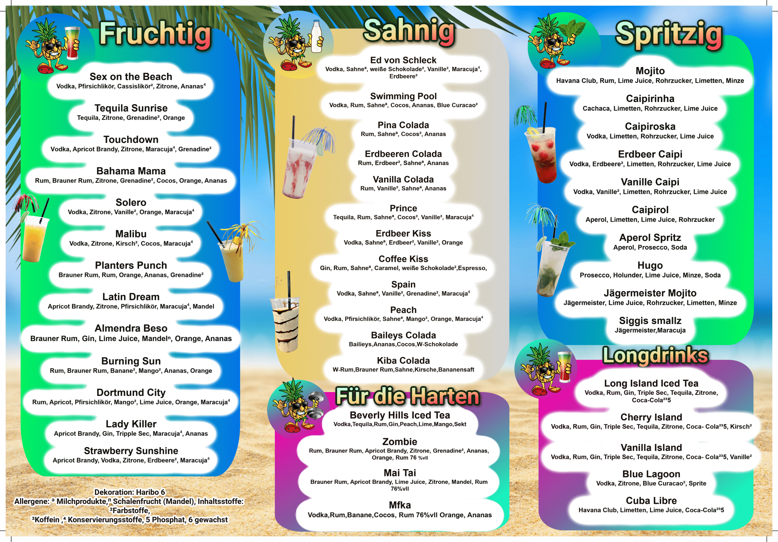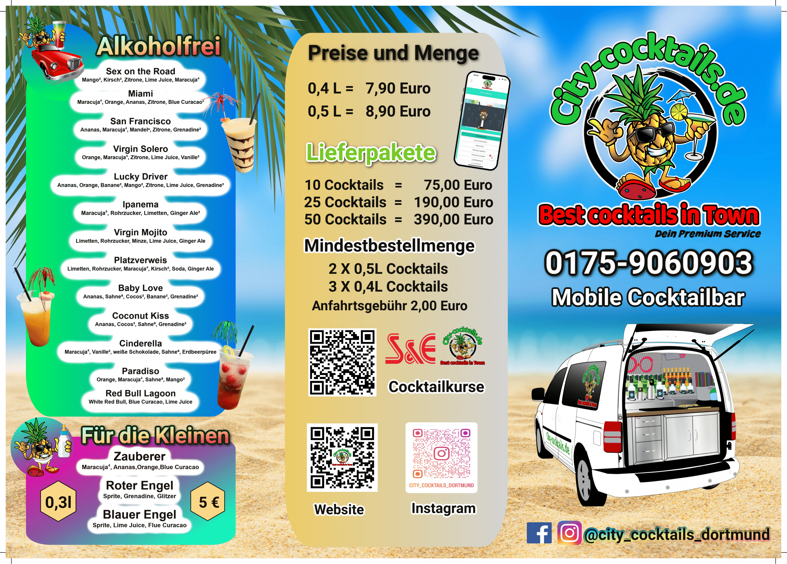 Sie können aus 60 verschiedenen Cocktails wählen. Von Sex on the Beach, Tequila Sunrise bis hin zu alkoholfreien Cocktails ist für jeden Geschmack etwas dabei. Wir liefern schnell und zu günstigen Konditionen.